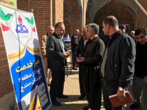 به مناسبت هفته بسیج، میز خدمت ادارات شهرستان سنندج امروز در مسجد جامع سنندج برپا شد و مسئولان دستگاههای اجرایی پیش از خطبهها و پس از اقامه نماز جمعه، بهطور مستقیم به درخواستها و مشکلات مردم رسیدگی کردند.